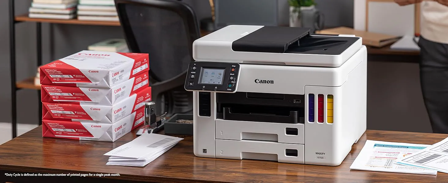 Bu doldurulabilir ve kullanımı kolay 3’ü 1 arada, MegaTank donanımlı MAXIFY GX yazıcı ile CPP ve TCO’da büyük tasarruflar sağlarken yüksek kaliteli iş belgeleri yazdırın.